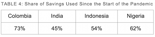 This data is encouraging but there are still several indicators highlighting the fragility of the recovery. For instance, while it is positive that many businesses have re-opened, most of those are new businesses that entrepreneurs started as opposed to closed businesses that re-opened once pandemic restrictions were lifted. While the number of businesses in this scenario is too small for robust quantitative analysis, there are indications that these businesses are in a more precarious financial position than their peers that never closed. For example, in Colombia, new business owners reported spending down more of their savings (80 percent) compared to owners who never closed (70 percent). Meanwhile, the number and value of outstanding loans were similar in both groups. Similar patterns can be seen in Nigeria, too. Meanwhile, the improvement in profit trends is promising, but as Table 2 shows, there was a large minority of respondents — and a majority in Indonesia — who reported their profits were still on the decline.