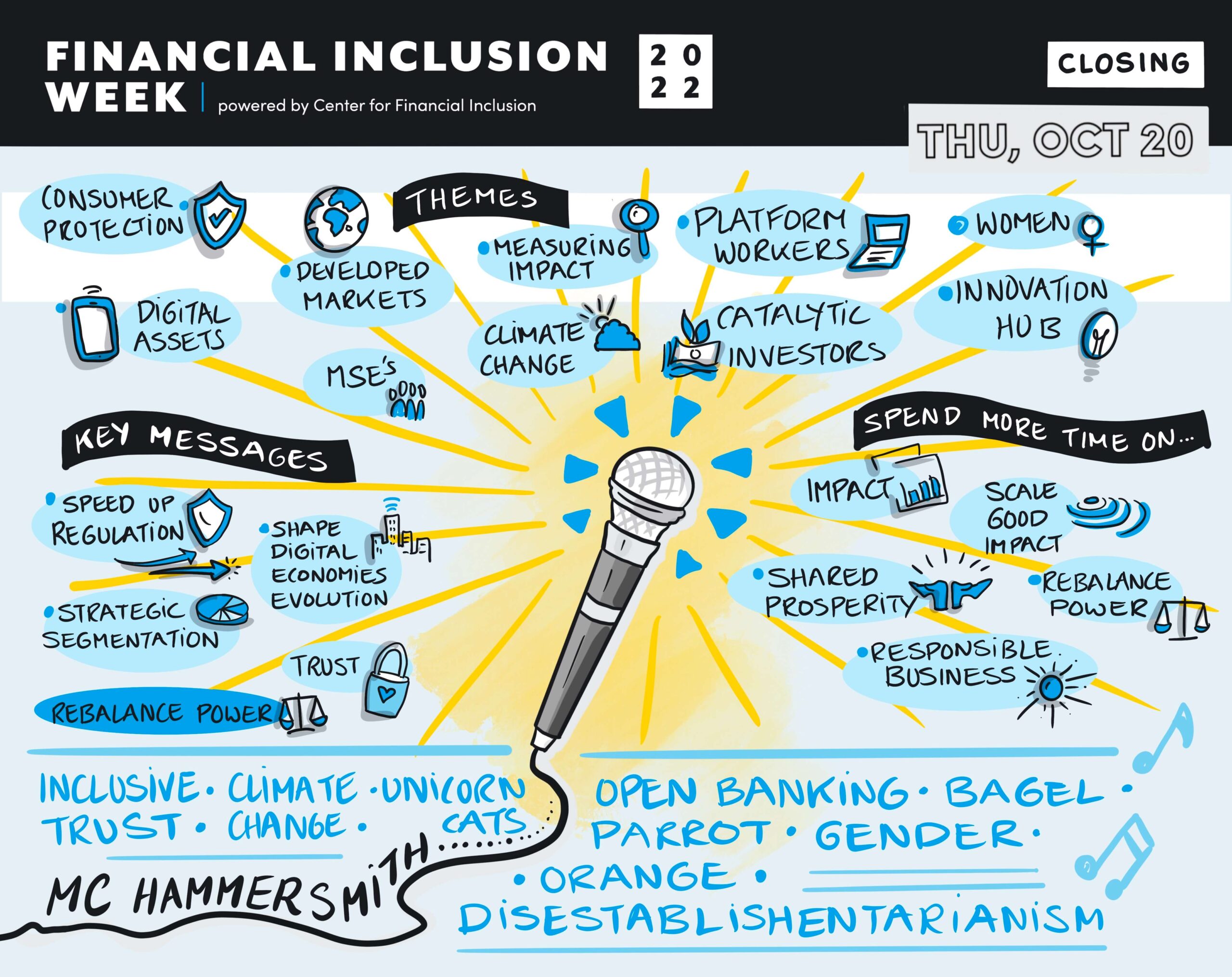To me, the scale of this year’s FIW and the coming together of the minds of stakeholders worldwide during this difficult time signals an urgent need and momentum to accelerate our understanding of how inclusive finance must evolve to address global challenges. With over 50 hours of live content and 70 on-demand sessions, FIW has something for everyone. While it would be amazing to watch the hours of rich live and on-demand content oneself, we know few people have this luxury. We have been reflecting on this at CFI and will launch a blog series that highlights takeaways on key topics covered during FIW 2022.
