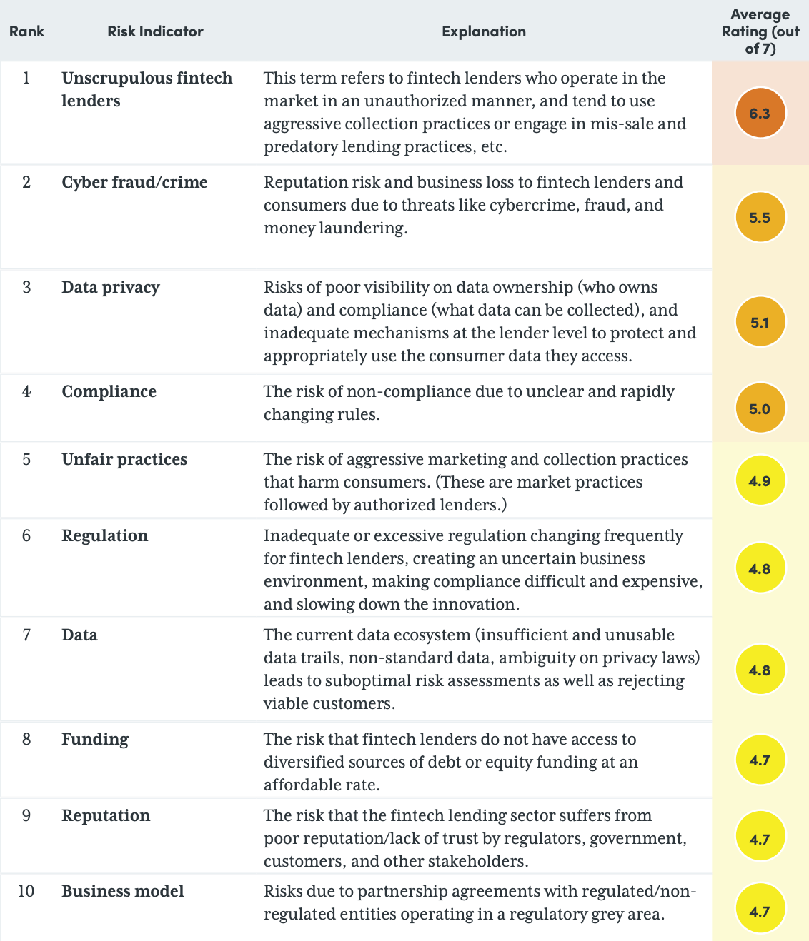 The top three risks identified were unscrupulous fintech lenders, rising cyber fraud and crime, and issues around data privacy. The report is being released at the Inclusive Finance India Forum 2023 and can be accessed here.