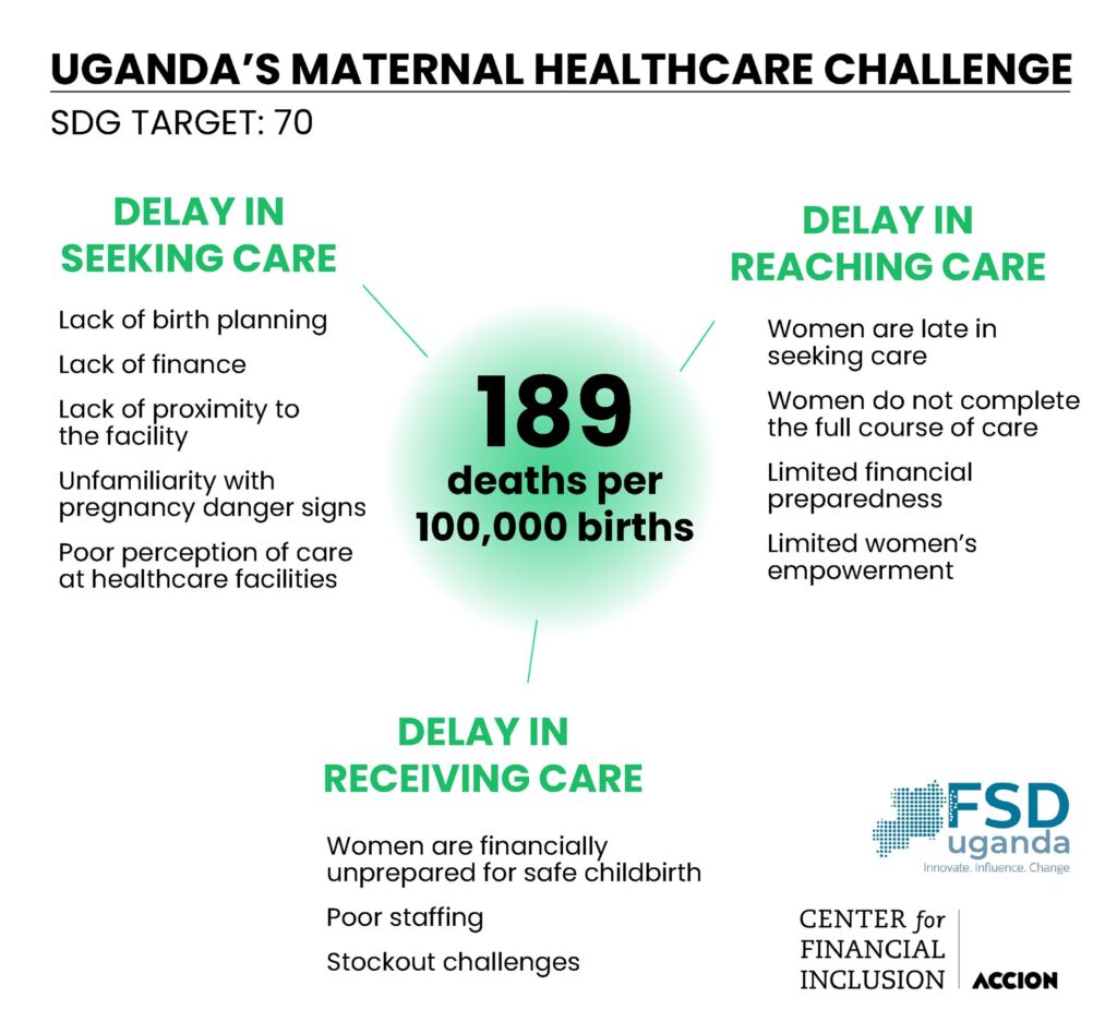 To better understand and address Uganda’s maternal health crisis, FSD Uganda identified three critical delays that hinder access to maternal healthcare: delays in seeking healthcare, reaching the point of care, and receiving care. All three categories of barriers reference a lack of access to finance.