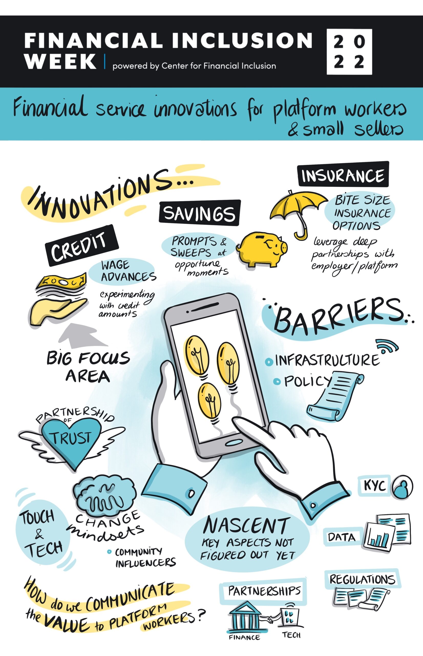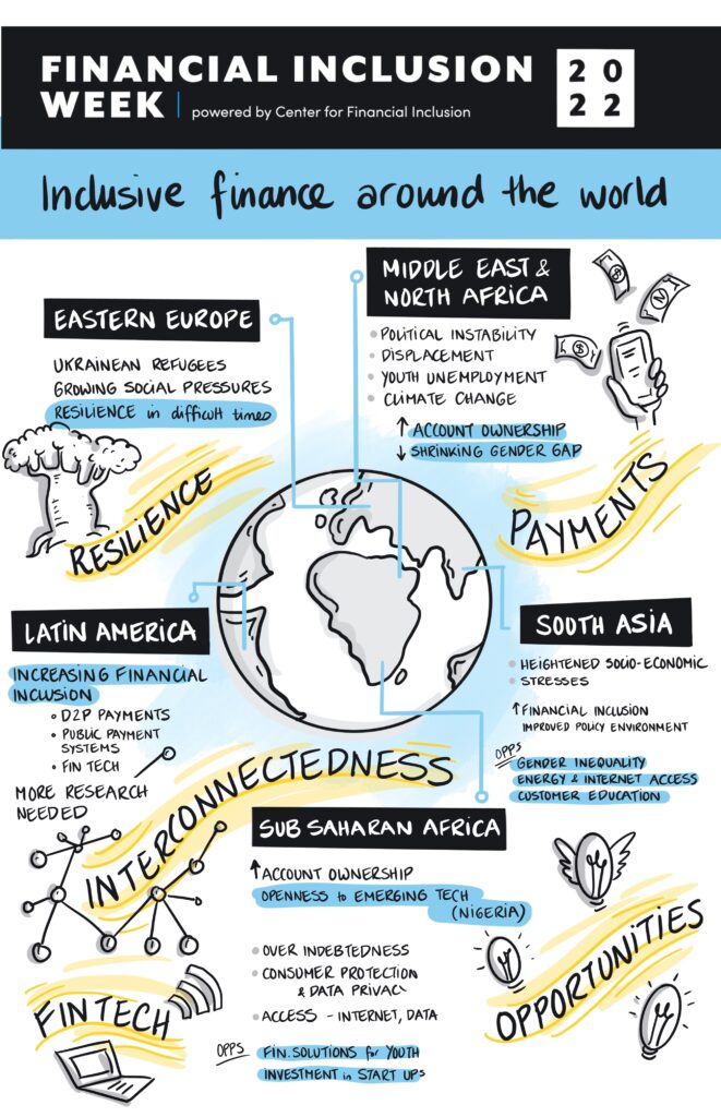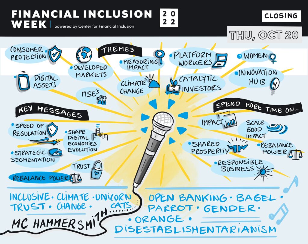 The theme for FIW 2022 was “Inclusive Growth in a Digital Era.” For years, financial products and services have been moving digital, and the pandemic further accelerated the trend toward digitalization. As digital becomes the new norm, we must ensure that these services are safe and inclusive of all people and do not exacerbate the exclusion of marginalized and vulnerable groups. The 2022 event explored how the global financial inclusion community can harness digital innovation to expand inclusive financial services for all people across the globe, ensuring that products meet customer needs, have appropriate safeguards in place, and contribute to inclusive economic growth.